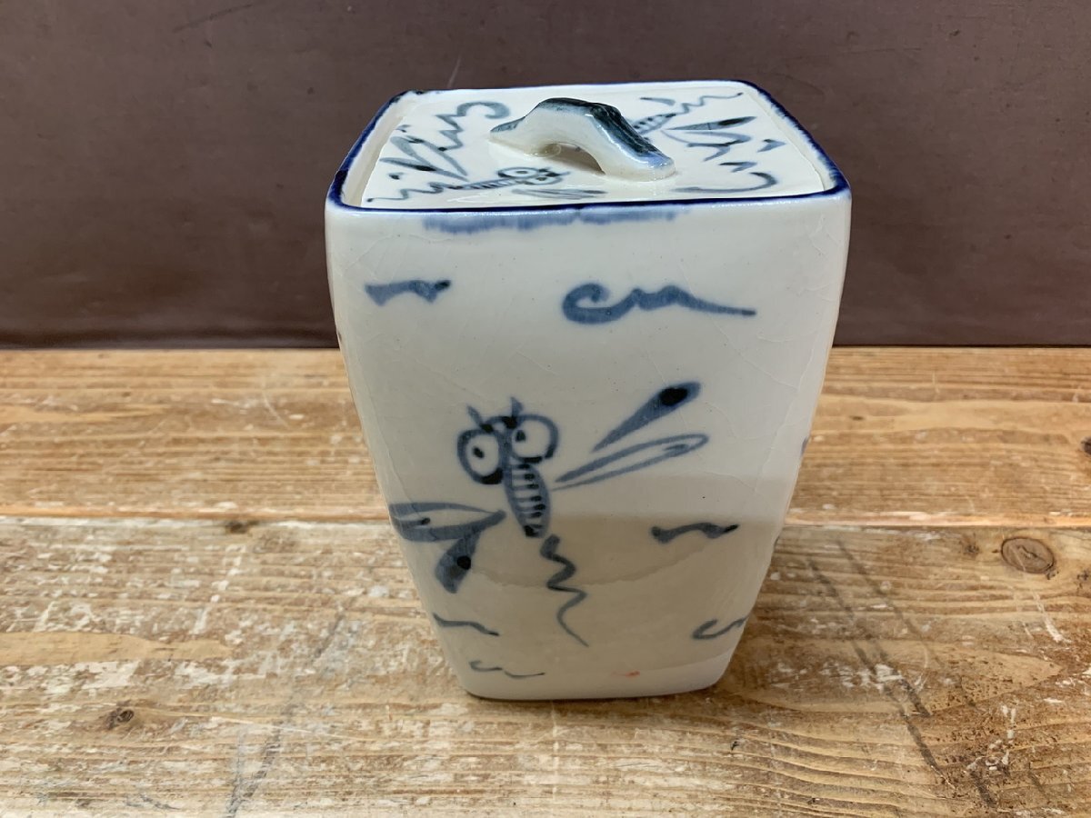 - 【JX-6069】茶道具 水指 角安南 トンボ 五陶作 高さ約16cm 東京引取可【千円市場】