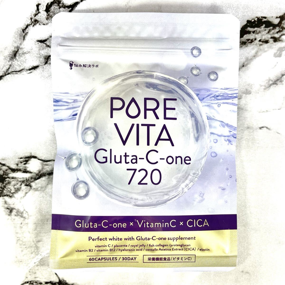 - 飲む白玉美容 ピュアビタ グルタチオン プラセンタ CICA 美容成分 サプリ ビタミン ヒアルロン酸 コラーゲン 悩み解決ラボ サプリメント