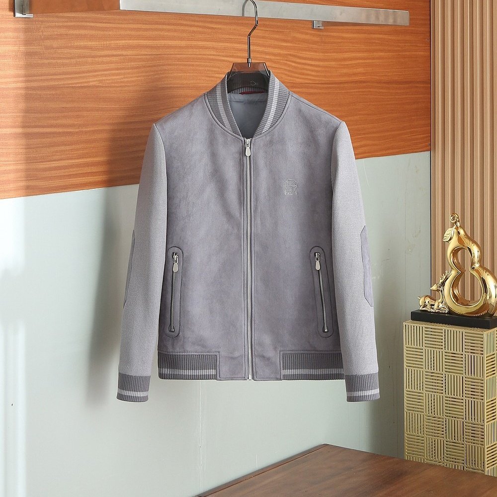 - グレーXL★送料無料★ブルネロクチネリ★メンズ スエード ボンバージャケット, スポーツカジュアル,リブ編み切り替え, ジッパー付き