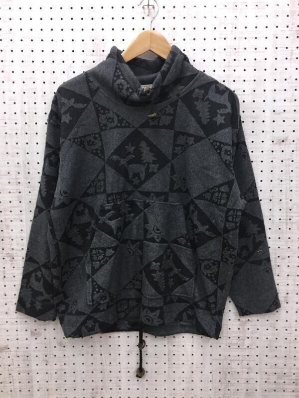 - angel parade CARATS inc レディース オールド レトロ カントリー 古着 ハイネック 総柄 長袖フリース トレーナー トップス グレー Mサイズ