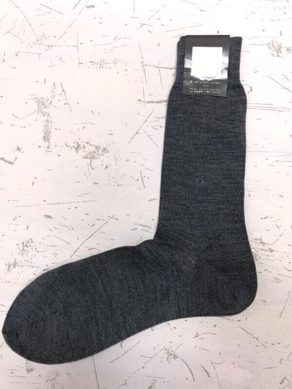 > 新品 未使用 クリスチャンディオール Christian Dior MONSIEUR カネボウ製 メンズ サイズ25-26cm ウール混 ソックス 靴下 グレー