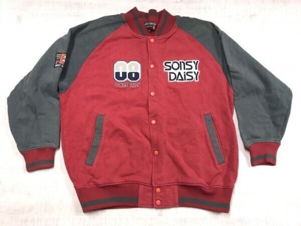 > SONSY DAISY アメカジ ストリート スポーツ古着 リブ切替 ワッペン スウェット スタジャン ジャケット メンズ ラグランスリーブ M 赤グレー