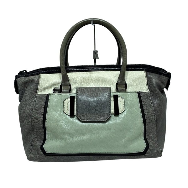 - ミリー MILLY ハンドバッグ - レザー グレー×白×ライトグリーン バッグ