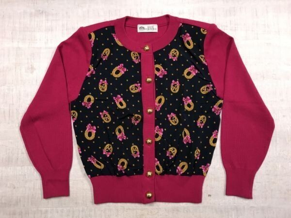 > ホワイト イタリヤード WHITE ITARIYARD レトロ カントリー ブティック 古着 金ボタン ニット 切替 カーディガン レディース ピンク