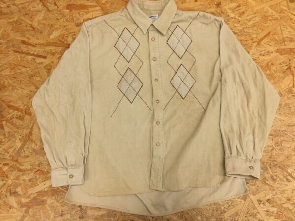 - LACIFONELLI ブティック レトロ 長袖コーデュロイシャツ ブラウス レディース 刺繍 アーガイル 大きいサイズ17R ベージュ