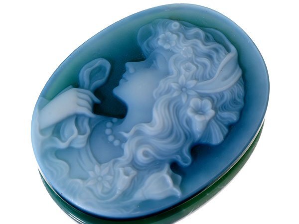> 【ジュエリー極】華やかな美しい女性の横顔の彫刻 高級グリーンストーンカメオルース 35.0mm×27.1mm k916i【送料無料】