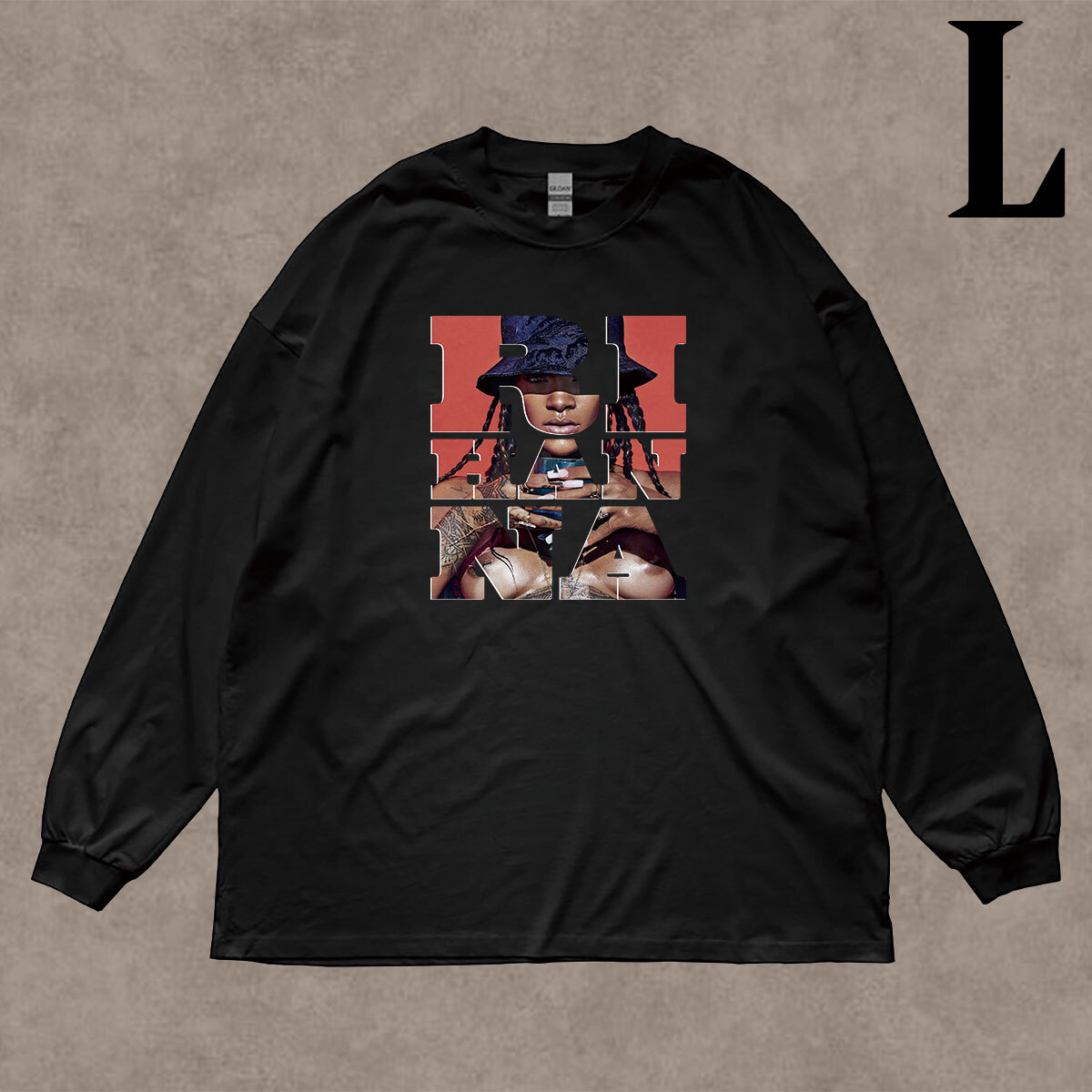 - リアーナ Rihanna フォトプリント リブ付き 長袖 Tシャツ ロンT 6oz コットン100% キレイめ カジュアル R&B クロ L