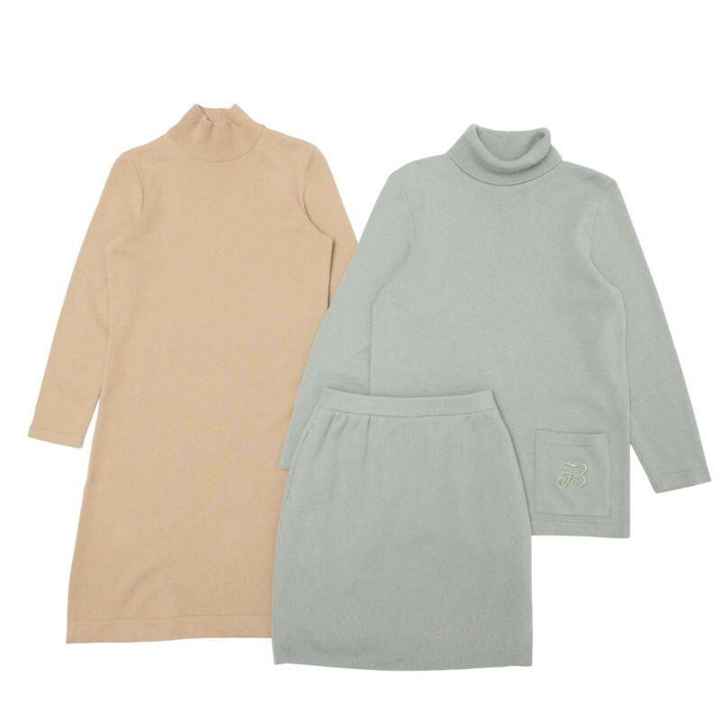 > MH9795/9796〇3点セット/セットアップ含む*総カシミヤ*ハイネック ニットワンピース*タートルネックニット/スカート*サイズ38/40