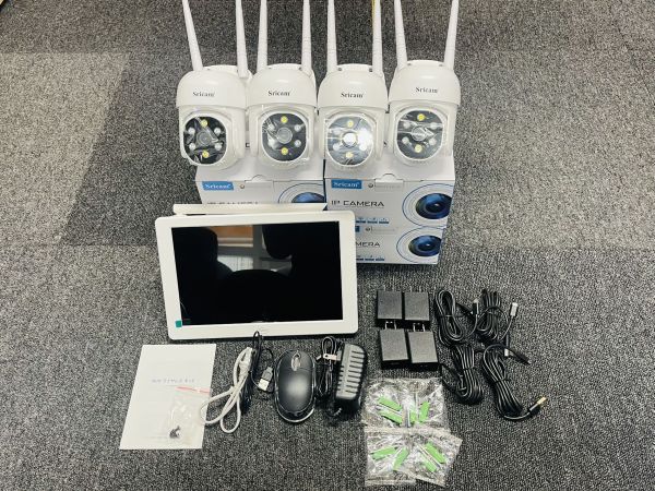 - 【送料無料・30日間保証付き 】最新ワイヤレス防犯カメラ4台セット 10.1インチLCDモニター暗視撮影 H.265+映像圧縮技術