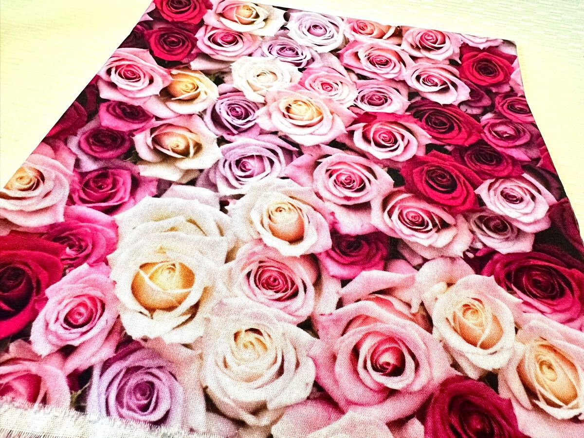 - USAシーチング.綿100%生地.幅110cm×50cm.ピンク薔薇2302