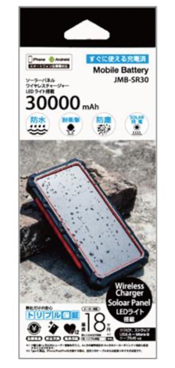 - コンピューケースジャパン JMB-SR30-BKRE ソーラー付き大容量モバイルバッテリー 30000mAh JMBSR30BKRE 防水 耐衝撃 日本正規販売 未使用品