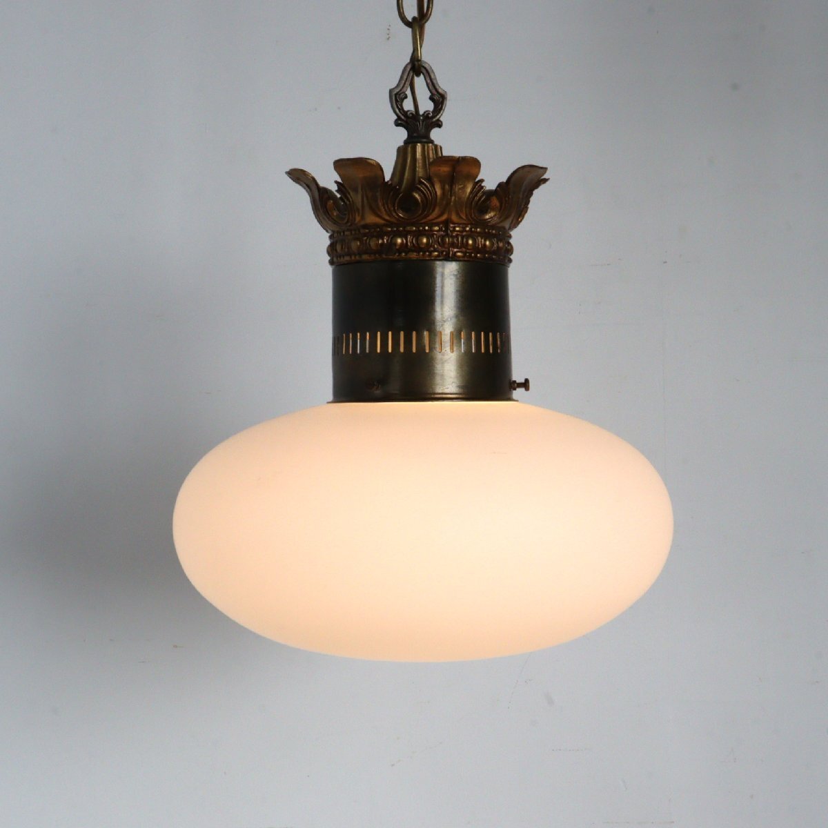 > アンティーク ガラス ペンダントランプ /ヴィンテージ アメリカ 吊り下げランプ カフェ 照明 シーリング#606-40-245-542