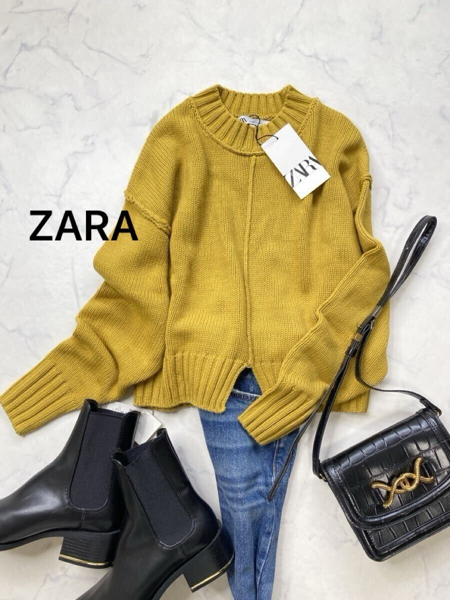 > ZARA ザラ★タグ付き未使用★大人素敵★キレイ色 マスタードカラー ドロップショルダークロップド丈ニット セーター★XSサイズ 1042