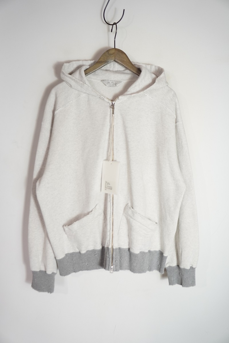 - 国内正規 美品 25SS ANCELLM アンセルム ZIP UP HOODIE HEATHER WHITE ANC-CT89 ジップアップ スウェット パーカー 加工 サイズ2灰白610P