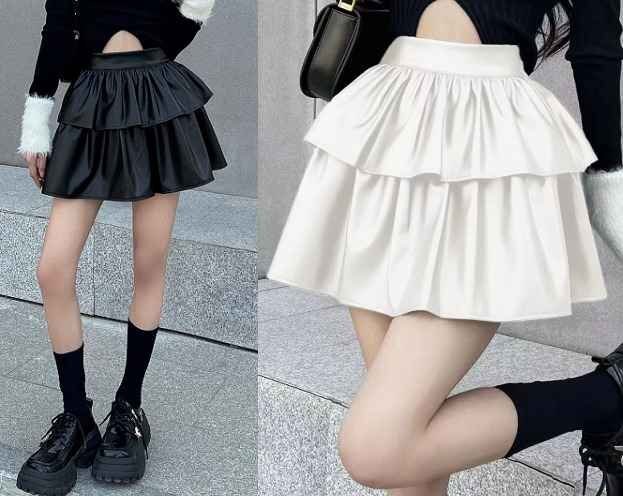 - 全2色 ミニスカート ハイウエスト フリルスカート かわいい L ブラック