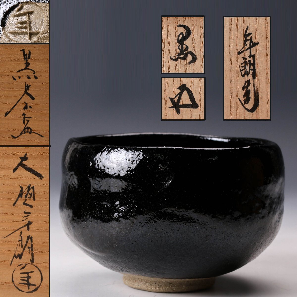 > 【佳香】十代 大樋長左衛門(年朗) 黒茶碗 裏千家十五代鵬雲斎(汎叟宗室)書付箱 茶道具 本物保証