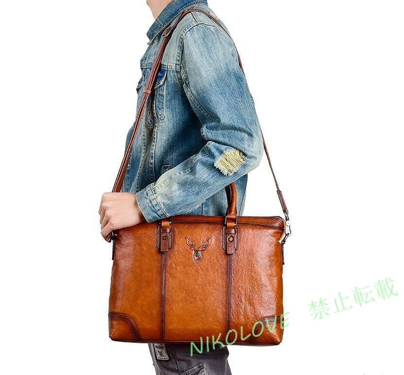 - ☆新品 高品質 ビジネスバッグ ショルダーバッグ メンズバッグ 斜めがけ 本革 牛革 トートバッグ 大容量 多機能 手作り 手染め ヌメ革