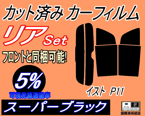 - カーフィルム スーパーブラック カット済み リアセット イスト P11 (s) スモーク ガラスフィルム 110系 NCP110 ZSP110 NCP115 ist トヨタ