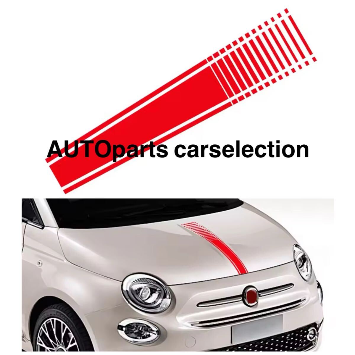 - 即日出荷・送料無料・赤 フィアット500用 ボンネットストライプステッカー フードデカール 防水タイプ 外装ドレスアップ ビニール製