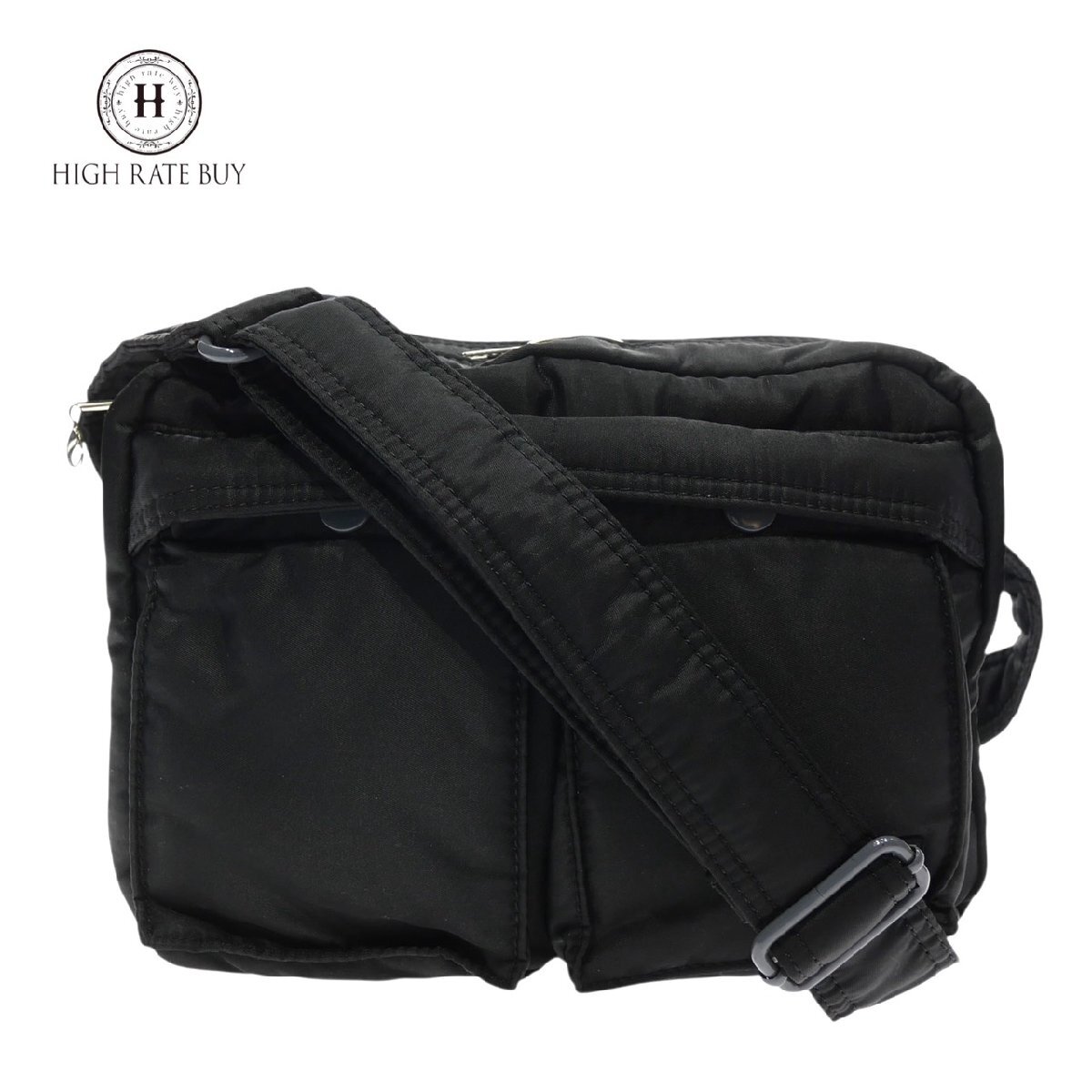 - 1円スタート PORTER ポーター ナイロン ショルダーバッグ シルバー金具 斜め掛け クロスボディ ブラック 黒 メンズ レディース