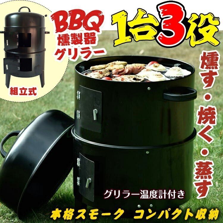 > 一台多役 焚き火グリル バーベキュー グリル 燻製器 BBQ グリラー 燻製 スモーク 焼肉 キャンプ 蒸す 野外 自宅 庭 組立 収納 101