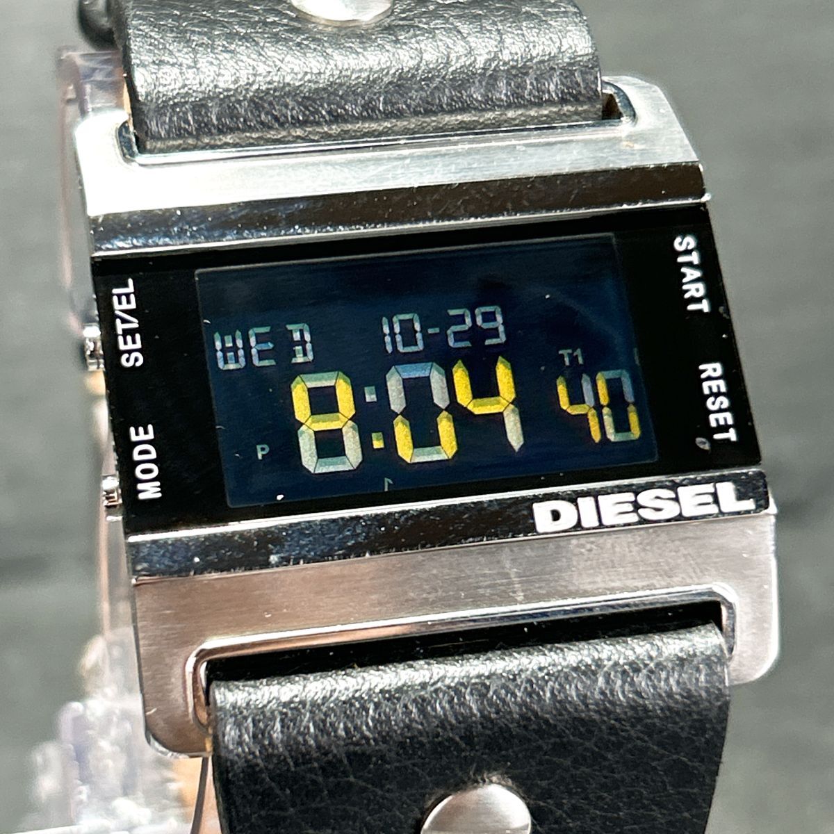 - 美品 DIESEL ディーゼル DZ-7081 腕時計 クオーツ デジタル 多機能 スクエア カレンダー ステンレススチール 新品電池交換済み 動作確認済