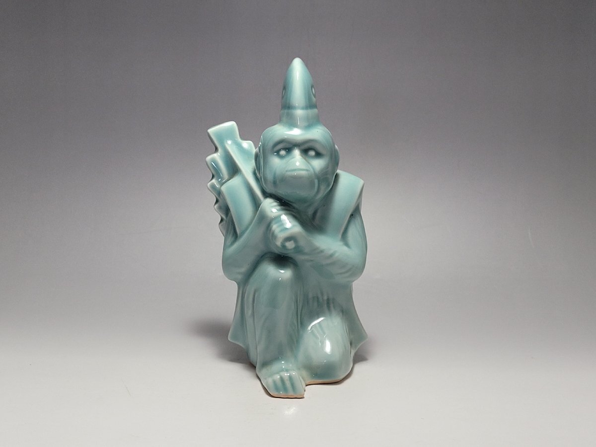- お猿さん 清水焼 瑞光作 置物 干支 縁起物 高さ約17.7cm / 置物 擺件 唐物 人間国宝 李朝 高麗 古玩 古董