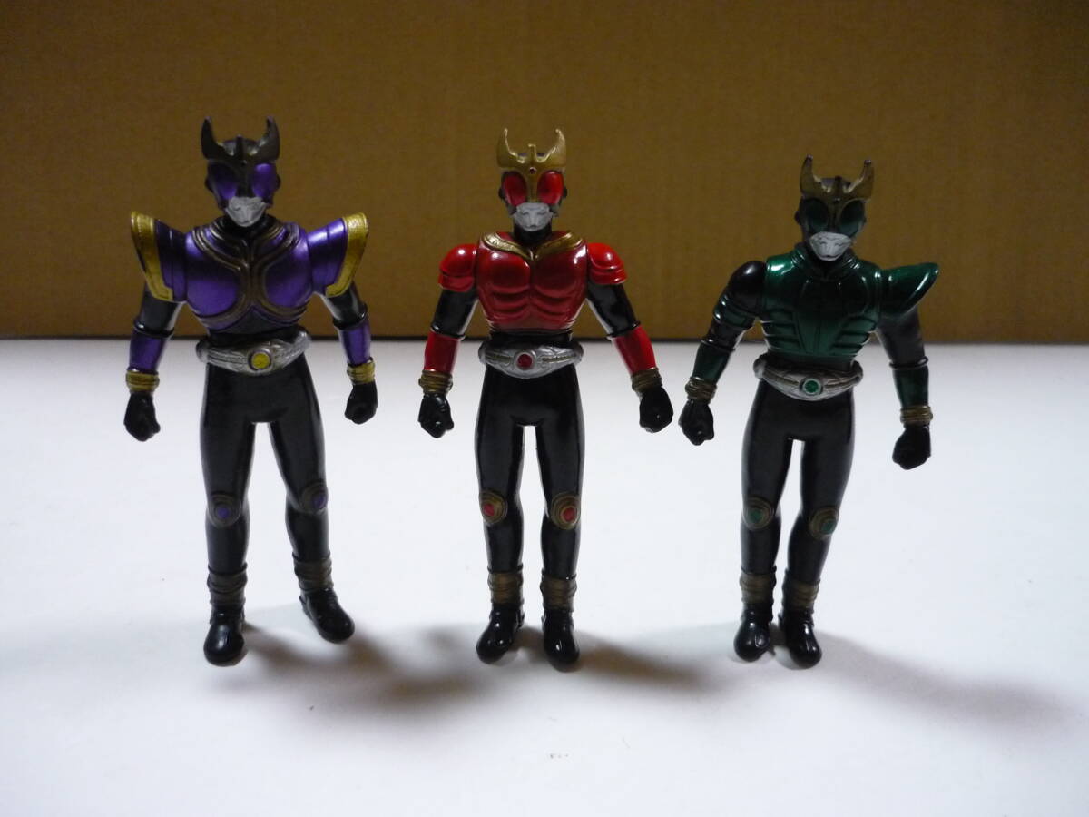 > [管00]【送料無料】ソフビ 3個セット 仮面ライダークウガ 約9cm 仮面ライダー バンダイ 人形 当時物 特撮 フィギュア