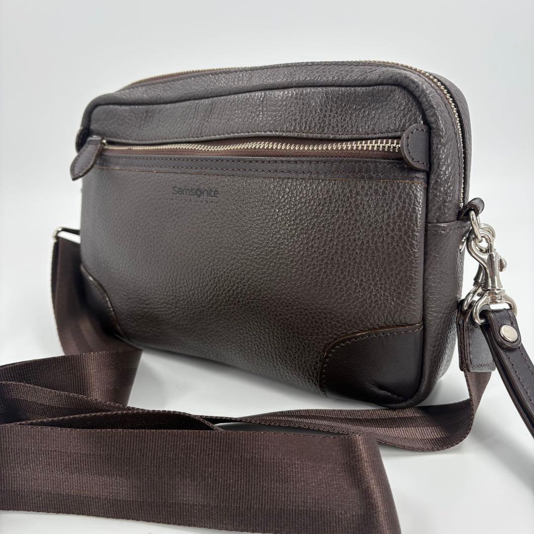 - 美品 サムソナイト 2way ショルダーバッグ クラッチバッグ レザー 茶525 somsonite