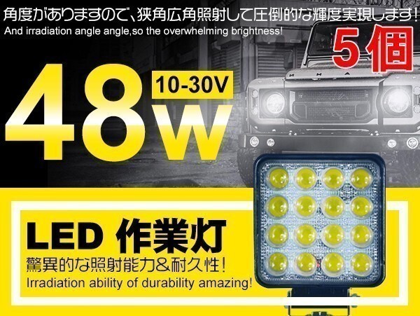 > 1円~5個セット 16連 48W LED作業灯 夜釣り/建築機械向け DC12/24V LEDワークライト ホヮイト 狭角/広角 「WP-ZG01-B/ZG02-Cx5」