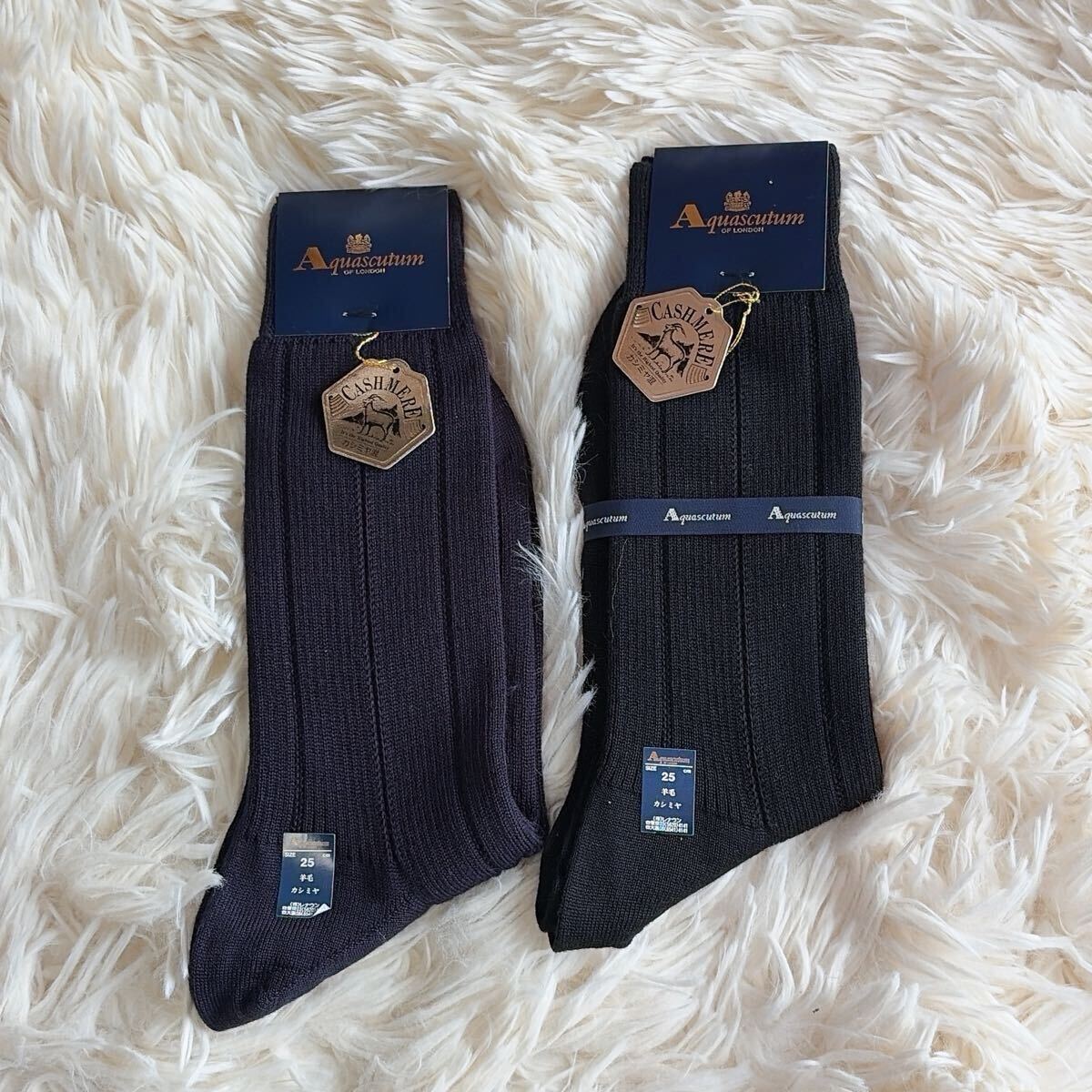 - アクアスキュータム Aquascutum 靴下 ソックス 紳士靴下 ビジネスソックス 25cm 2足セット カシミヤ混