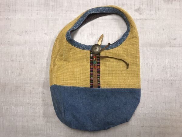 - アミナ コレクション Amina Collection エスニック ネイティブ コンチョボタン デニム切替 キャンバス トート バッグ カバン ネパール製