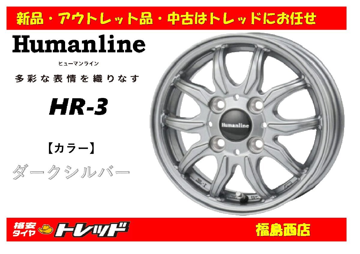 > 福島西 新品 アルミホイール単品4本セット ヒューマンライン HR-3 12インチ 3.5J 100/4H +42 ダークシルバー ★軽トラ 軽バン 等★