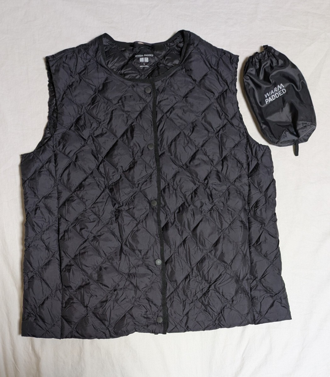 - 4879送料300円 ユニクロ UNIQLO パフテックキルティングベスト ノーカラー 211-460910 L レディース ブラック系 ウォームパデット ベスト