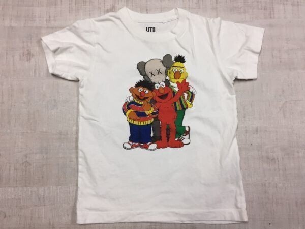- ユニクロ UNIQLO UT カウズ KAWS ×セサミストリート SESAMI STREET トリプルコラボ 半袖Tシャツ コットン100% キッズ 120 白