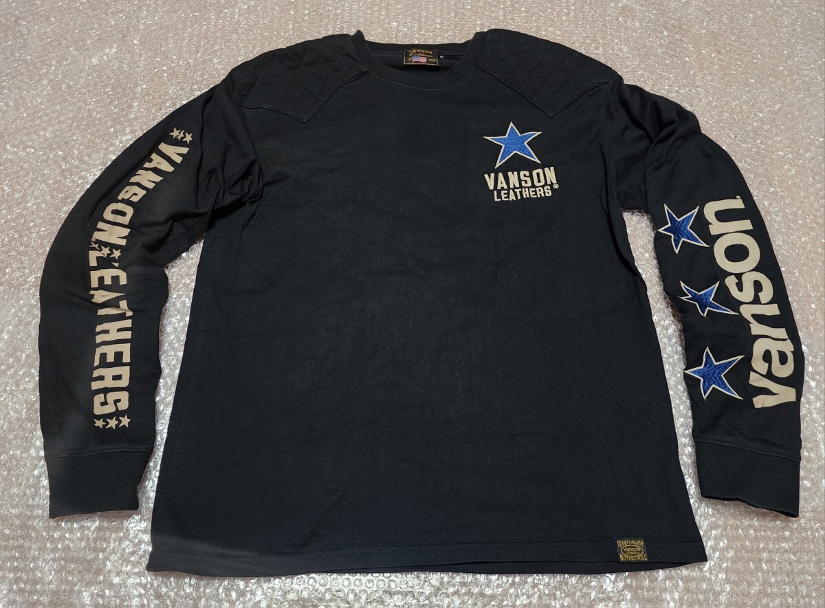 - 即決 早い者勝ち レア物【VANSON/バンソン】 ロングTシャツ ロンT 黒/ブラック サイズXL 胸元 両袖 背中にプリントや刺繍の豪華Ver.