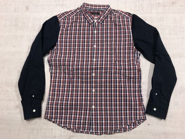 > レイジブルー RAGEBLUE ネオグランジ ロック モード 古着 小衿 トリコロール 異素材 袖切替 長袖 チェック シャツ メンズ L 紺/赤