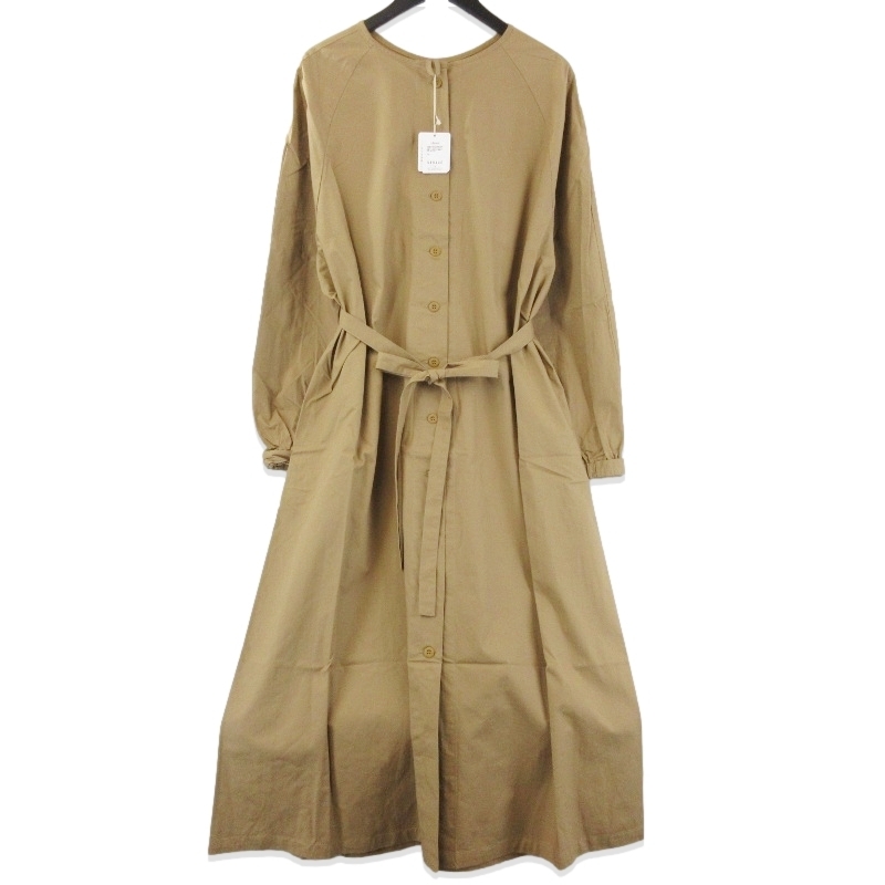 > 未使用 H アッシュ タックガウンワンピース 19SS ロングワンピース レディース コットン 日本製 ベージュ F タグ付き 71014001