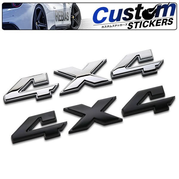- 送料無料 4X4 ブレーク 【ブラック】 エンブレム メタル 四駆 クロカン アウトドア ステッカー カスタム 外装