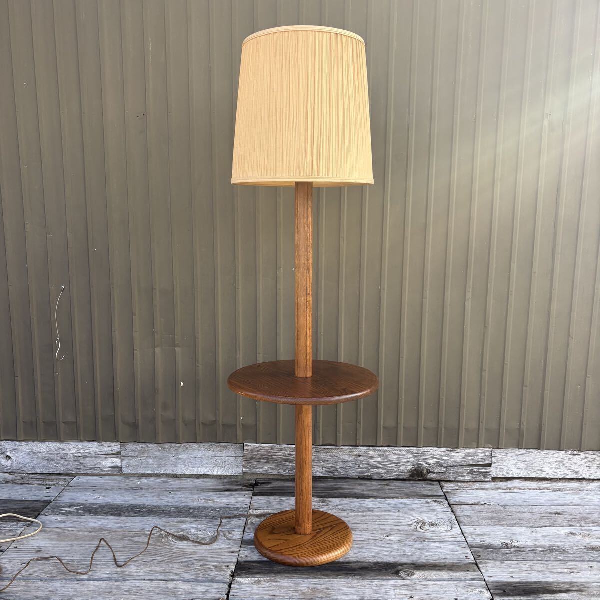 - アメリカビンテージ オーク材 テーブル付 フロアランプ 当時ものシェード