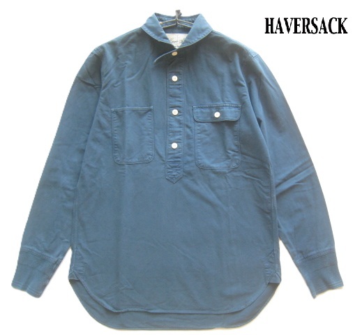 - 高級日本製!!ハバーサック HAVER SACK*丸襟 チンスト付き プルオーバーシャツ M 紺 ネイビー ワークシャツ