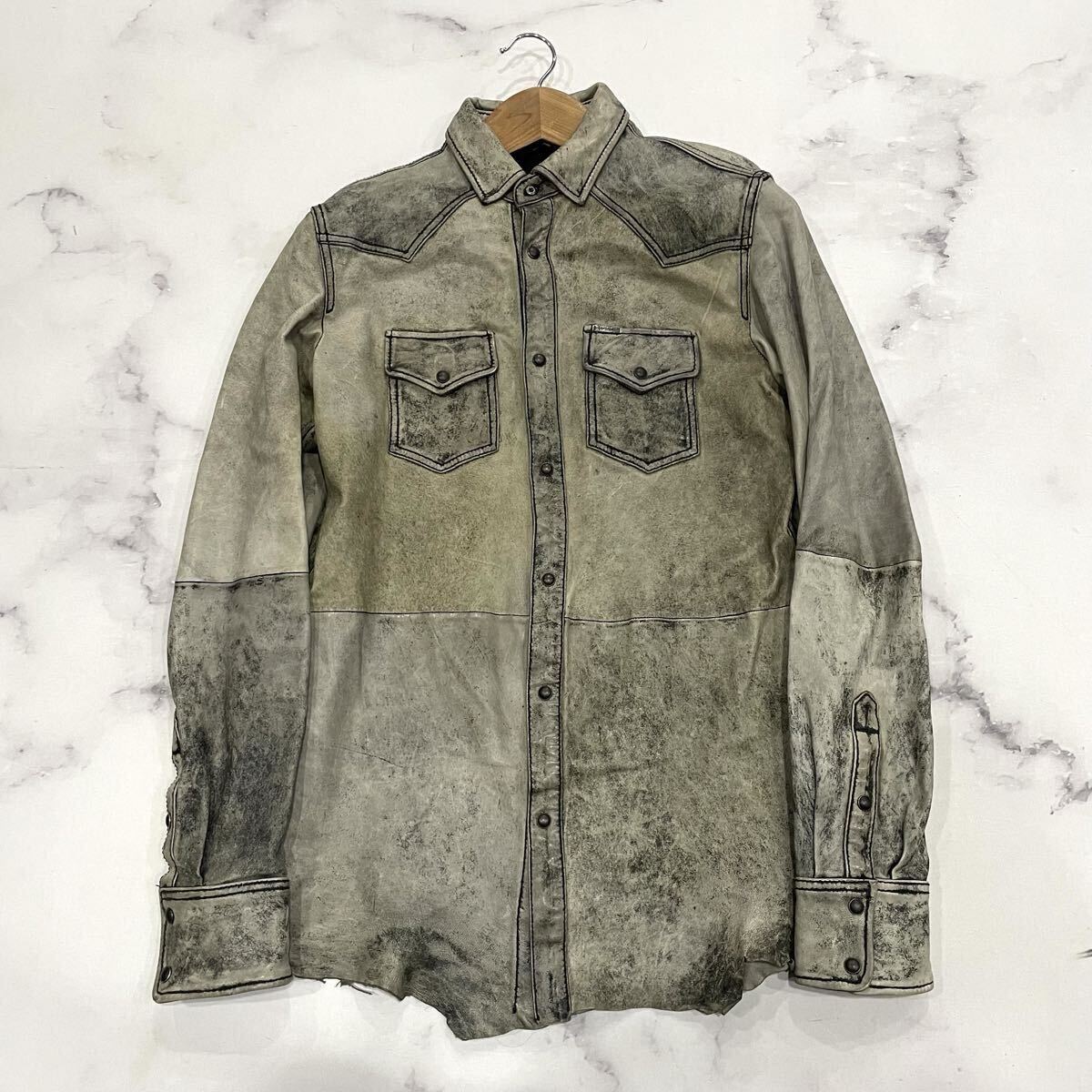 > AQ ○ 人気モデル '国内正規品' DIESEL ディーゼル 羊革 ビンテージ加工 レザージャケット size:M メンズ アウター 古着 グレー系