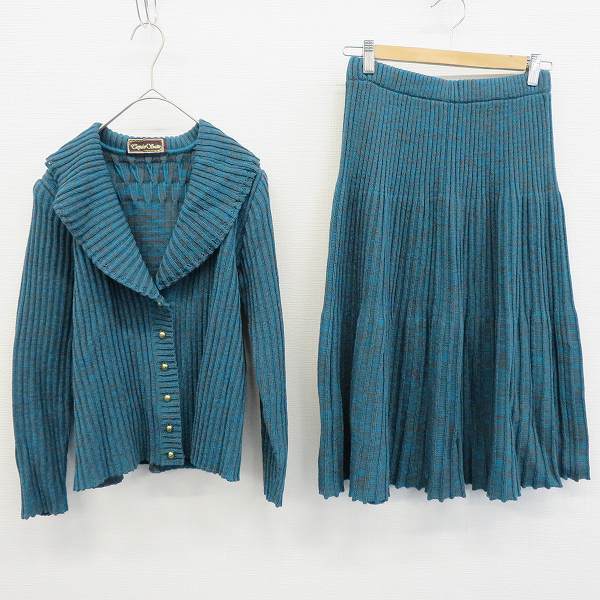 ◎商品名(タイトル):サイトウトヨコ 斉藤都世子 セットアップ スカートスーツ ニット カーディガン スカート 金釦 [a977552]◎ブランド名:サイトウトヨコ (斉藤都世子)◎アイテム名:セットアップ スカートスーツ ニット◎サイズ:-◎性別:レディース◎カラー:くすんだブルー系 ミックス◎素材:表記なし◎実寸サイズ:(トップス)肩幅約 36cm・袖丈約 55cm・着丈約 52cm・胸囲約 40cm×2 (スカート)ウェスト約 33cm×2〜ゴム・スカート丈約 67cm◎商品コメント:★当店の商品はすべてリユースアイテムとなります。特質上、些細なダメージは記載しておりませんので着用に問題のない使用感、着古した雰囲気などはご了承くださいませ。◎コンディションレベル:目立った傷や汚れなし◎コンディション備考:-キーワード/アクイール/古着/used/ビンテージ/ヴィンテージ/レトロ/昭和/ニットカーディガン/ニットカーデ/ロングスカート/ニットスカート/金ボタン