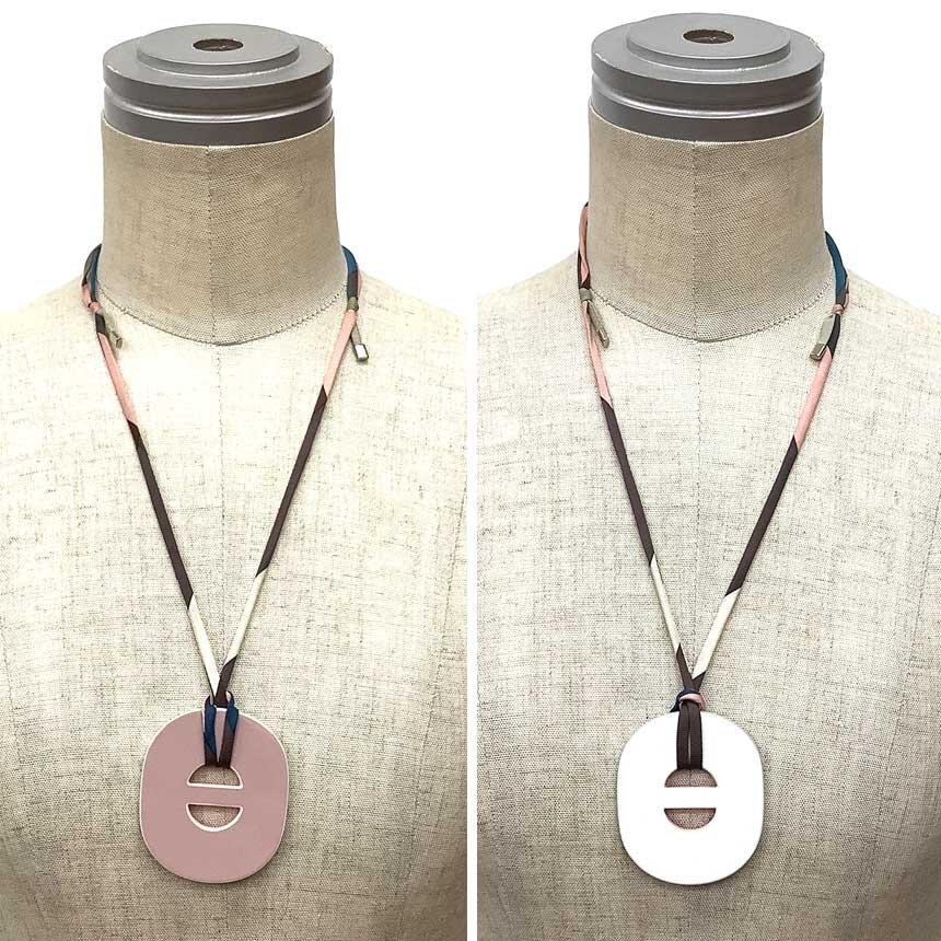 - 送料無料 HERMES エルメス ペンダントネックレス バッファローホーン ラッカー フィデリオ ピグマン TPM 白 ピンク 美品 aq11142