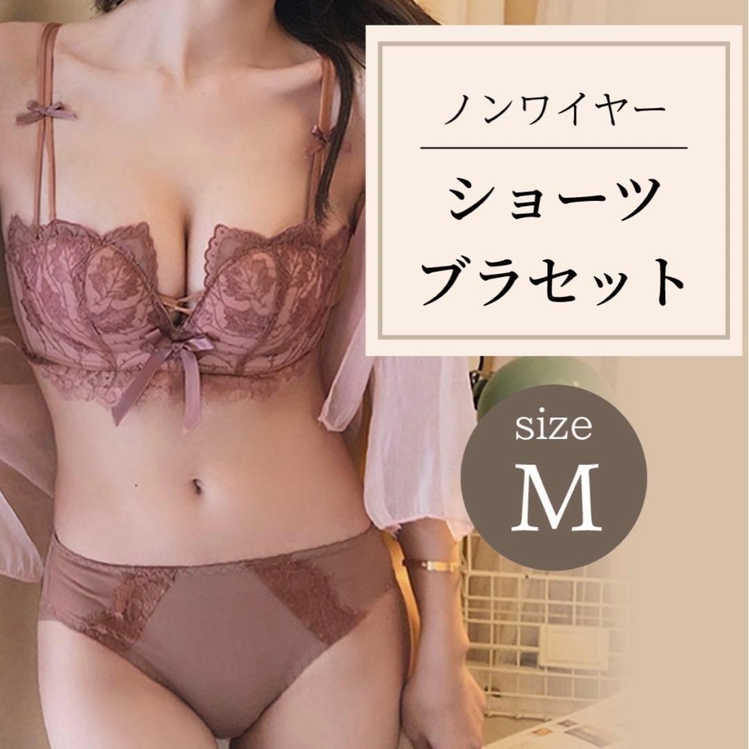 - 新品 レディース ノンワイヤー ブラ M ランジェリー ナイトブラ 盛り ピンク