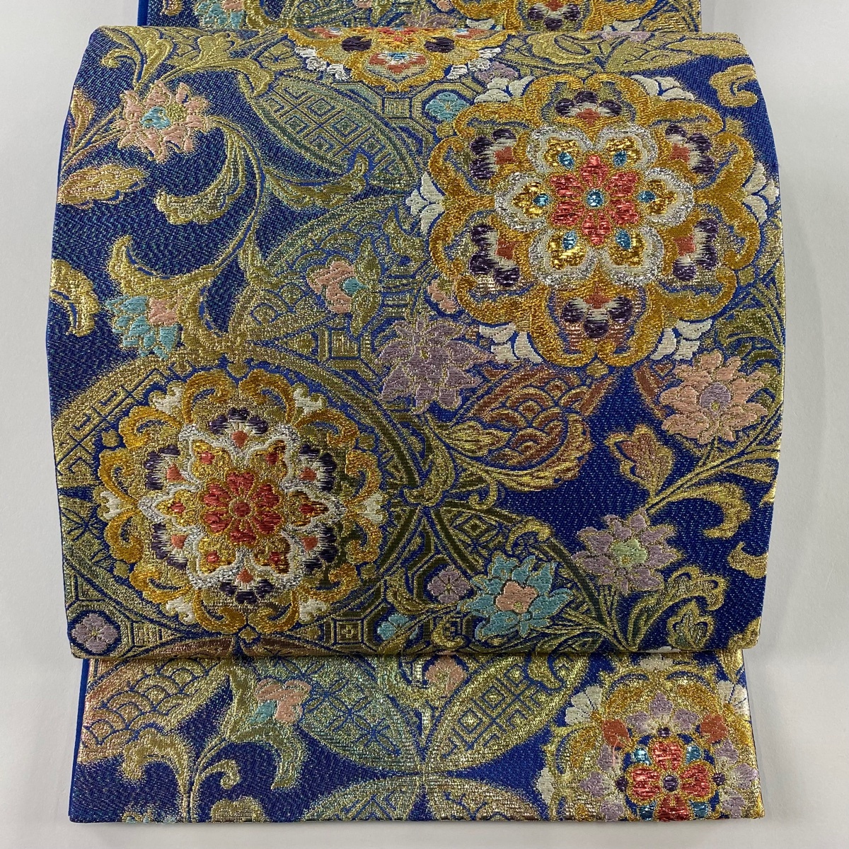 > 【美品】 袋帯 秀品 華文 七宝 箔 金糸 青 六通 正絹 【中古】