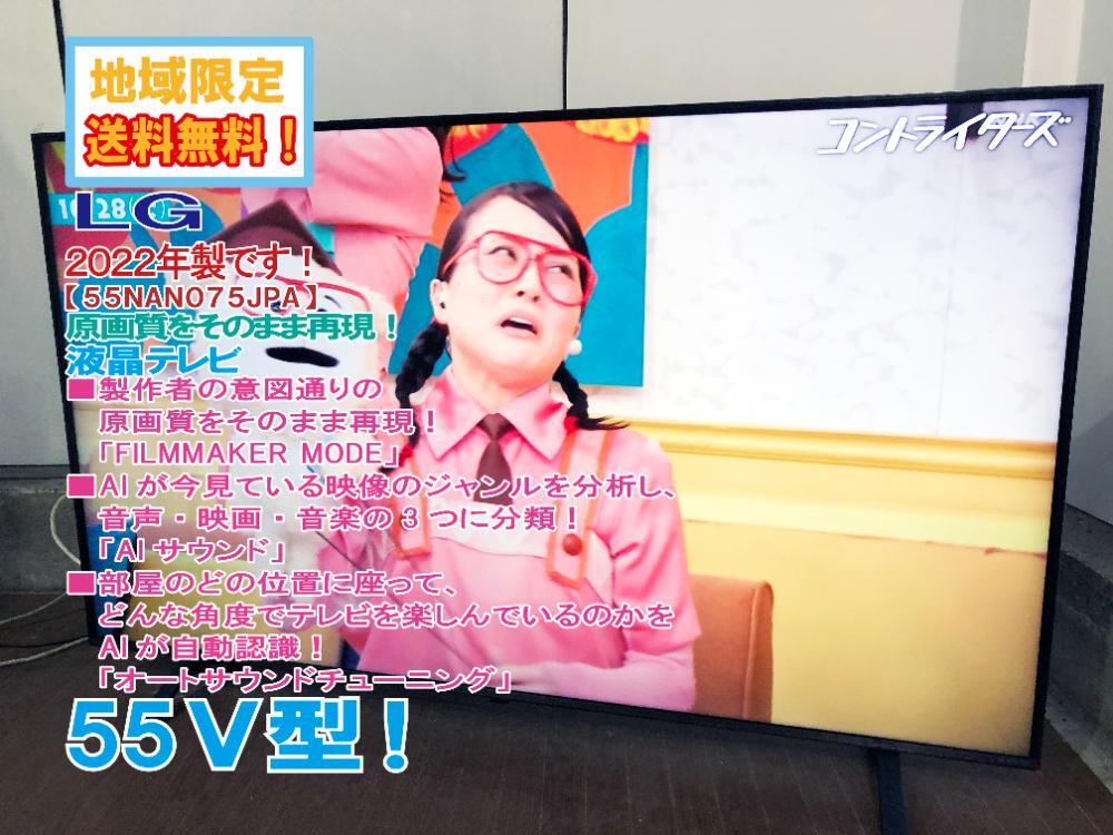 > 地域限定送料無料★2022年製★極上超美品 中古★LG 55V型 原画質をそのまま再現「FILMMAKER MODE」 液晶テレビ【55NAN075JPA】FP7E