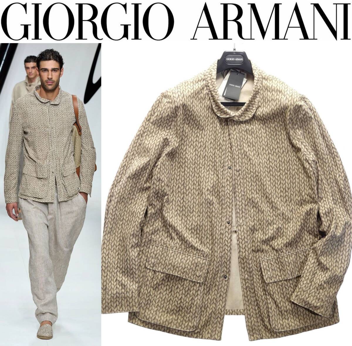 - 秋冬プレフォール新品1,408,000円GIORGIO ARMANIアルマーニ★圧倒的お洒落。編み柄プリントを施したブレザー丈レザーJKT【54=日本2~3XL