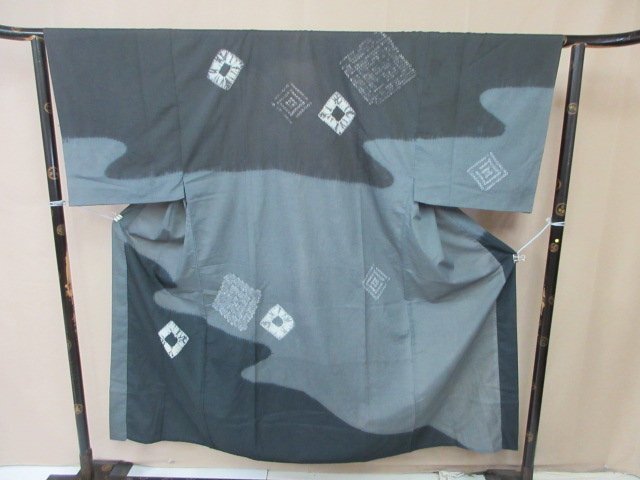 - 1円 中古 長襦袢 化繊 男性用 和装 和服 蜘蛛絞り 菱 幾何学 高級 渋カッコいい 身丈144cm 裄70cm【夢職】★