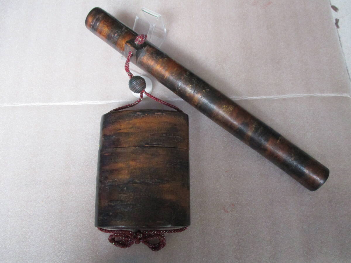 - 煙草入れ-樺細工【≪桜皮細工≫煙草入れ, 煙管入れ, 緒締め 時代物★ 煙管★ 煙管入れ★ 印籠】